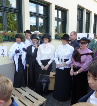 Musikalisch brachten die Musiker der Veedelskapell ,,Blos mer jet" Zuschauer und Aktive in Schwung. Pfarrer Thomas Rhein übernahm das wichtige Amt des Schiedsrichters, denn neben Sekunden und Minuten zählen auch Originalität und Ideen bei den Wagenaufbauten. Nach dem Umzug traf man sich zur Siegerehrung in gemütlicher Runde an der Groov-Terrasse.